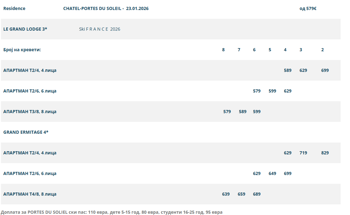 • Доплата за PORTES DU SOLEIL ski pass за 6 дена (650 км стази) Задолжителна предрезервација и плаќање во агенција. Наша топла препорака !