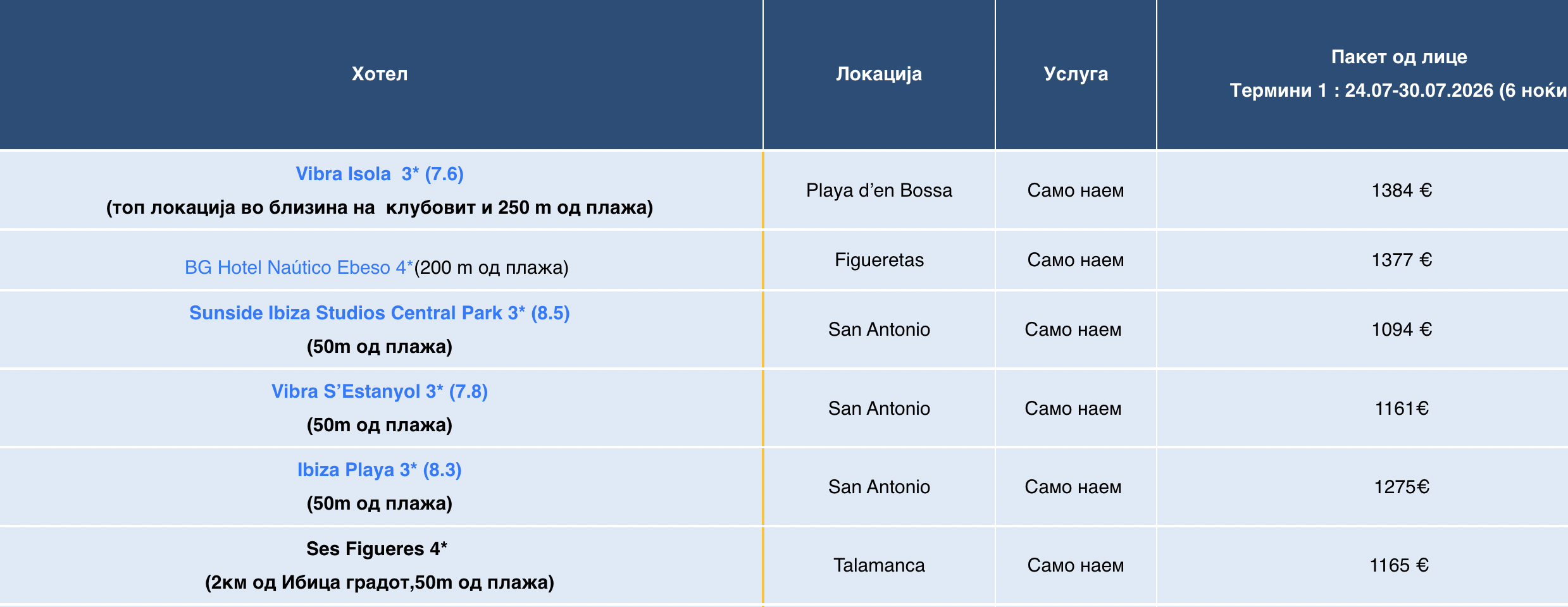 ИБИЦА – ШПАНИЈА ЛЕТО 2026