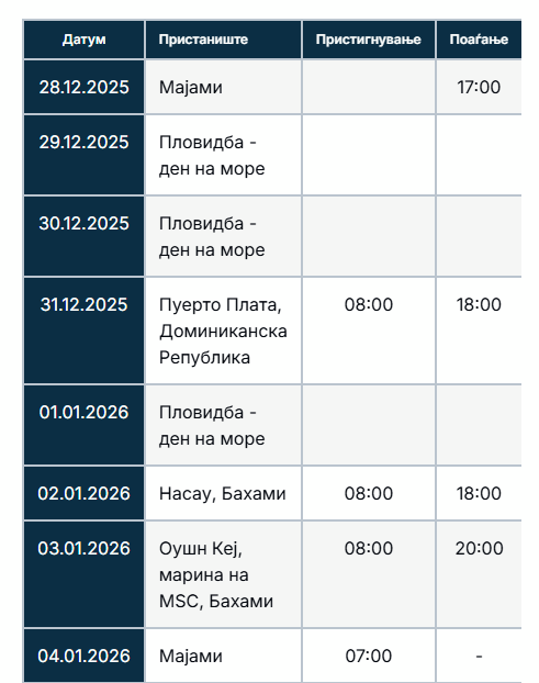 Мајами – Пуерто Плата – Насау – Оушн Кеј