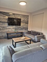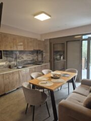 - 1/5 дуплекс – бр.1 – се наоѓа на прв спрат.Дуплексот располага со три големи простории.Има 2 посебни спални соби со брачни кревети и дневна просторија поврзана со трпезарија и кујна каде се наоѓа и кауч кој не се спушта.Кујната е целосно опремена, со најнов инвентар,исто така располага со тоалет и балкон на кој се излегува и има летна гарнитура за седење. Може да се сместат максимум 4 возрасни лица и 2 деца до 12 години. ( Има можност да се стави дополнително легло доколку се 2 деца до 12г)