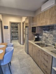 - 1/4 апартман – бр.3 – се наоѓа на трет кат. Апартманот располага со две големи простории. Има голем брачен кревет во спалната соба и голема дневна просторија поврзана со трпезарија и кујна каде се наоѓаат 2 каучи кои не се спуштаат.Кујната е целосно опремена, со најнов инвентар,исто така има тоалет и балкон на кој се излегува и има летна гарнитура за седење. Може да се сместат максимум 2 возрасни лица и 2 деца до 12 години.