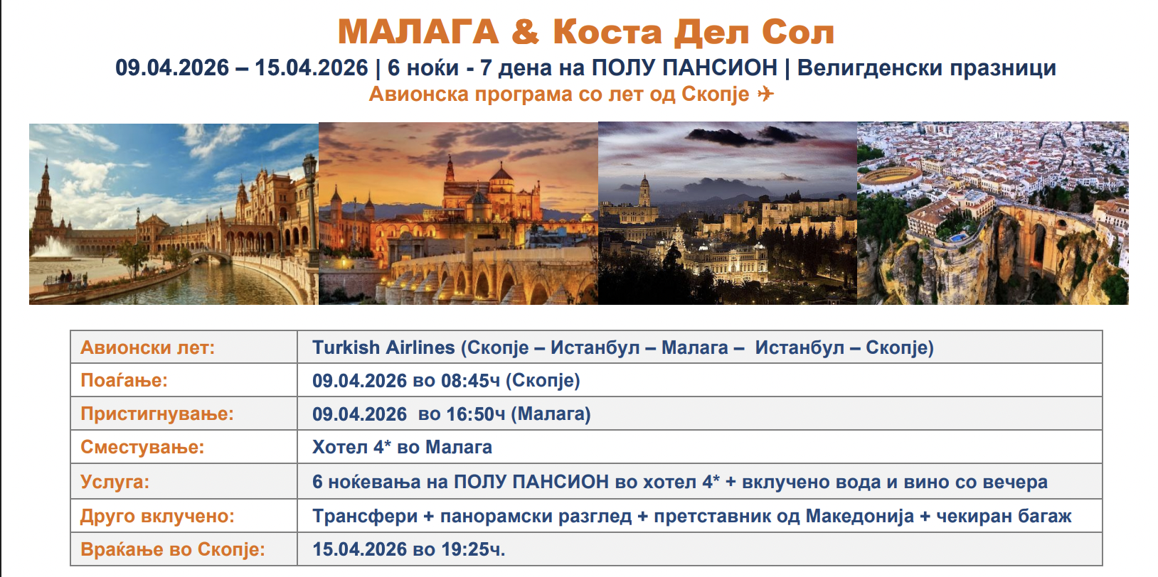 7 ДЕН. 15.04.2026 МАЛАГА – СКОПЈЕ