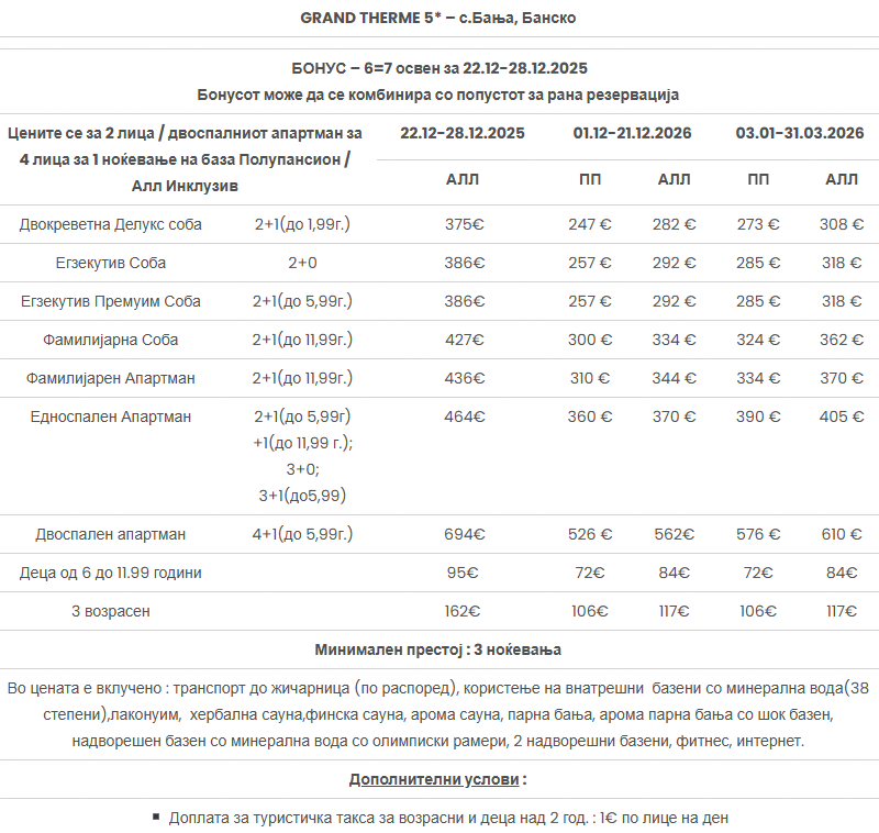 Се наоѓа на периферијата на прекрасното село Бања, во столетна борова шума. Пространо лоби, дизајнерскиот алпски покрив и атриум во средината… Сè е во природни топли бои и материјали – гранит, дрво, кожа и мермерни облоги. Површината на хотелот е 27.000 м2 и Спа просторот зафаќа 5.000 м2. Во близина се наоѓа голем фитнес центар од ланецот Pulse Fitness & Spa. Сите внатрешни и надворешни базени се со минерална вода, која извира во непосредна близина, со температура од 56 степени. Капацитетот на спа центарот, кој е прв во Бугарија со вакви карактеристики, е до 500 лица истовремено.
