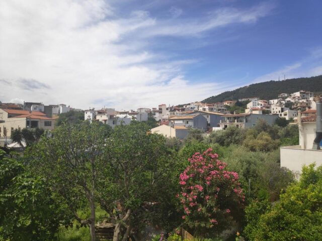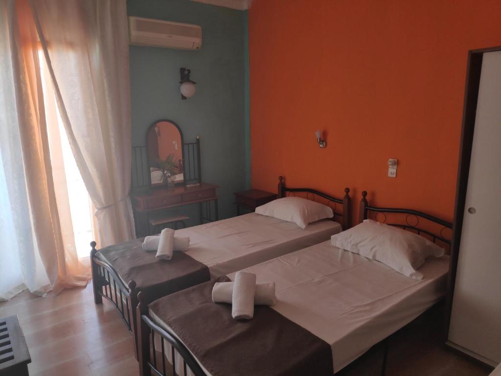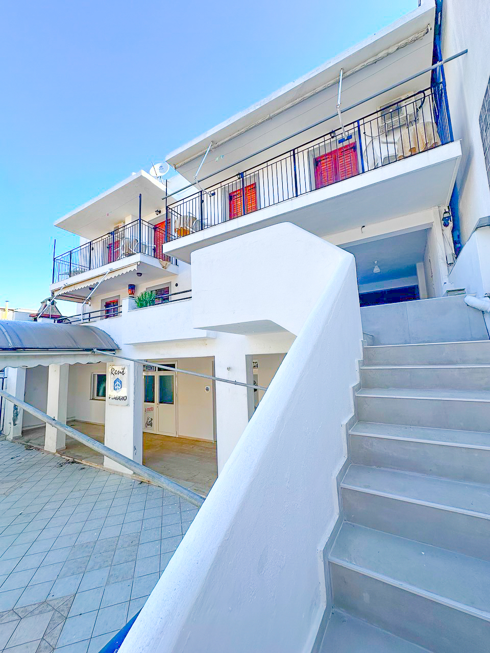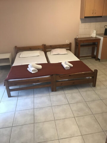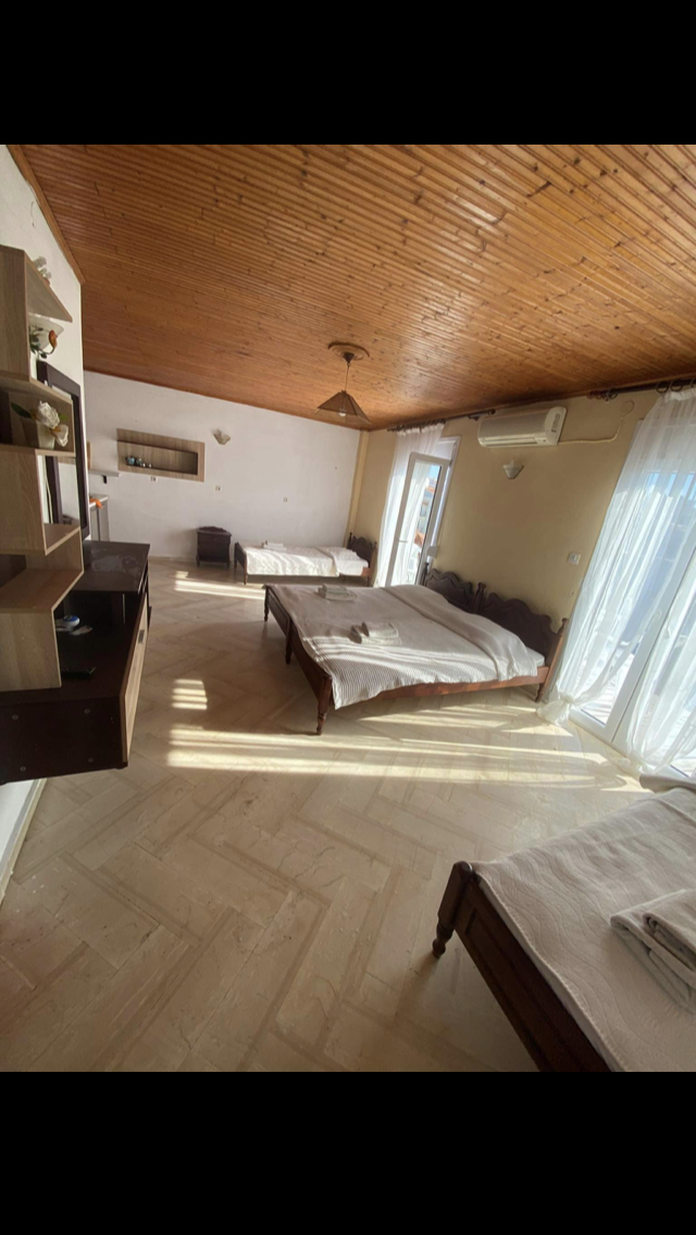 Вила “Angela Zoi” e лоцирана на 800 метри од плажата Мегали Амос, во ценатарот на градот. Вилата располага со трикреветни, четирикреветни студија како и четирикреветни дуплекс апартмани. Сите соби се со комплетно опремена кујна, тоалет, балкон, ТВ, WiFi и клима уред.