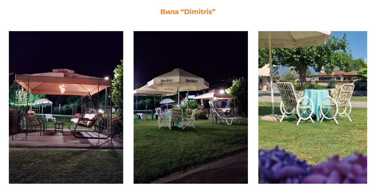 Вила Димитрис се наоѓа на само 120 метри од плажа. Располага со убаво уредени трикреветни и четирикреветни студија/апартмани. Сите студија/апартмани се опремени со бања, комплетно опремена кујна, ТВ, тераса. Користење на клима уредот, интернет (wi-fi) и сет пешкири (со депозит) по смена се вклучени во цената. Вилата се наоѓа во мирен дел опкружена со зеленило и со двор од преку 3.000м2, како и свој сопствен паркинг. Во градината има опрема за скара која е достапна за гостите, каде што има и трпезарија на отворено, летниковци и бесплатни лежалки во тревата. Вилата е многу години омилена дестинација во изборот на туристите кај нас. Туристичката такса се плаќа во агенција при уплата и истата изнесува 2 евра на ден по апартман.