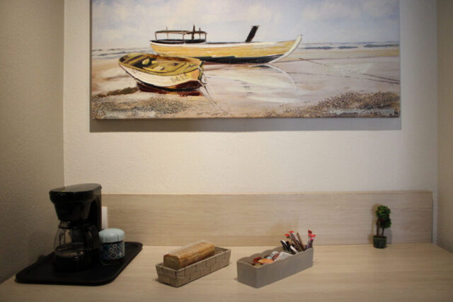 1/4 студио – бр. 205 – се наоѓа на прв спрат. Студиото располага со брачен кревет,софа и фотеља на спуштање. Може да се сместат максимум 4 возрасни лица и 1 дете до 12 години