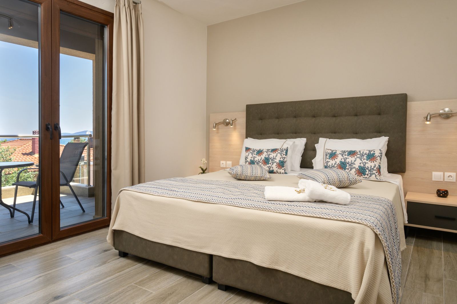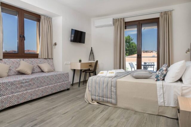 1/4 студио – бр. 305 – се наоѓа на втор спрат со поглед на море. Студиото располага со брачен кревет, софа и фотеља на спуштање. Може да се сместат максимум 4 возрасни лица и 1 дете до 12 години