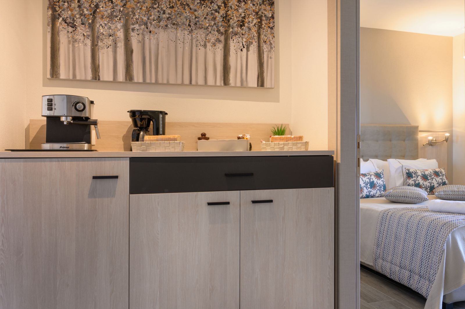 1/4 апартман – бр. 204 – се наоѓа на прв спрат. Апартманот располага со две големи простории. Во првата просторија има брачен кревет, во втората просторија има два големи единечни споени кревети, кујна, тоалет и балкон кој излегува од двете простории. Може да се сместат максимум 4 возрасни лица и 2 деца до 12 години.