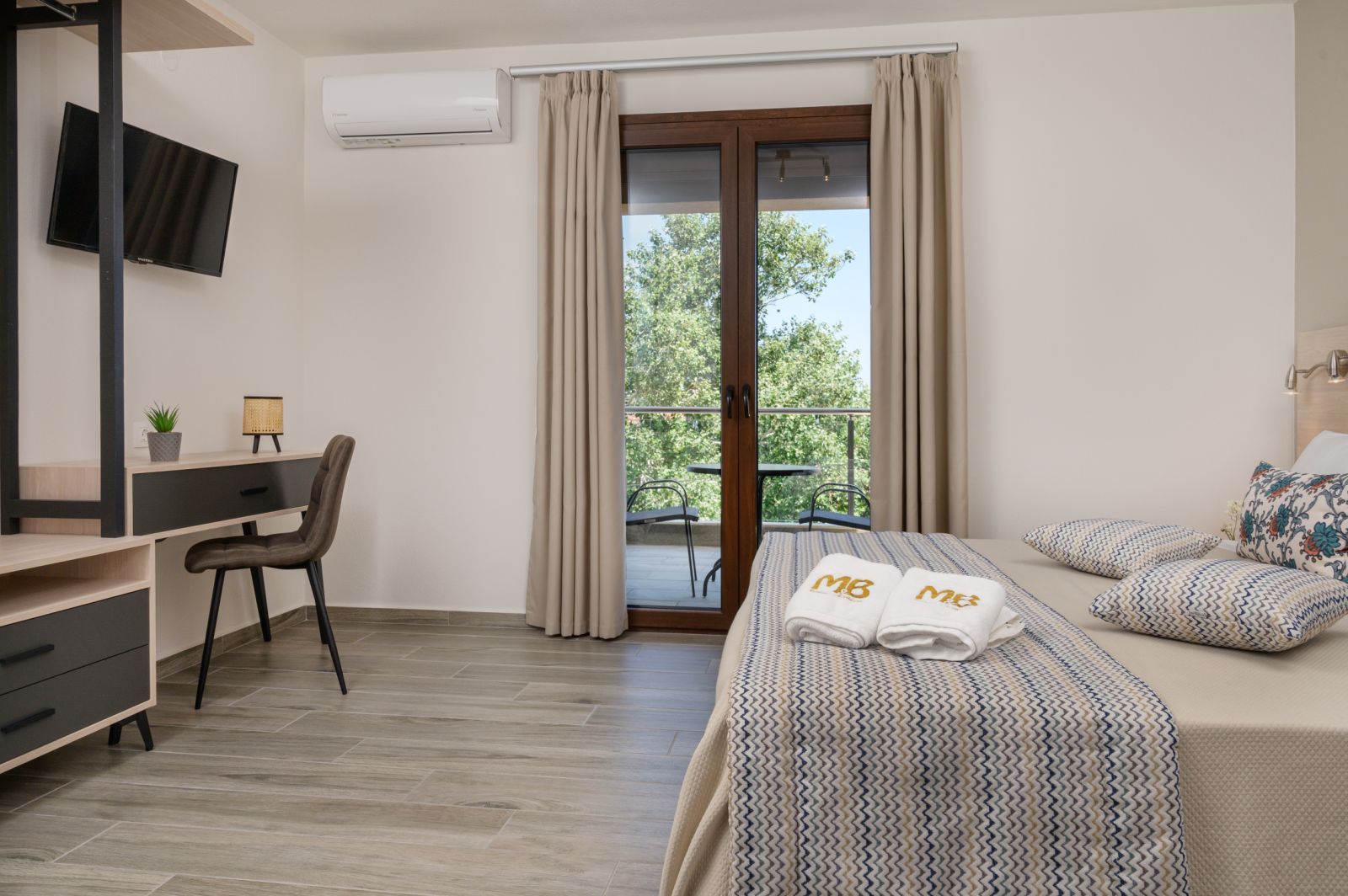 Вила M&B Boutique се наоѓа во централниот дел на градот на само 70 метри од градската плажа. Вилата располага со четворокреветни студија и четворокреветни апартмани. Сите соби се луксузно опремени со најнов инвентар. Кујна опремена со: кујнски прибор, апарат за кафе/нескафе, тостер, електричен бокал за вода, фрижидер. Во кујните нема шпорет. Клима (вклучена во цена), тоалет опремен со сите средства за лична хигиена, пешкири, тераса и паркинг. Секојдневно чистење на собите. Во цената е вклучено неограничено користење на кафе, двопек, путер, џем, мед, млеко за кафе и вода за добредојде.Менување на пешкири и постелнина е секоја среда.