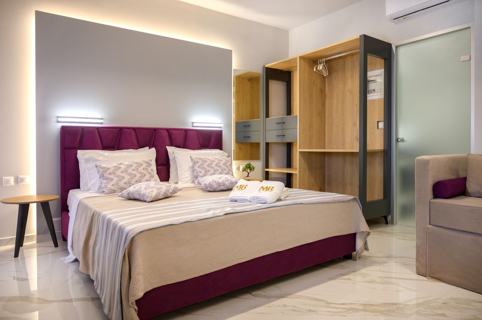 Вила M&B Suites се наоѓа во мирен дел на градот на само 50 метри од градската плажа. Вилата располага со три четворокреветни студија и едно трокреветно студио. Сите соби се луксузно опремени со најнов инвентар. Комплетно опремена кујна, клима (вклучена во цена), сопствено купатило, тераса и сопствен паркинг.Чистењето на апартманот и менување на постелнина и пешкири е секоја среда.