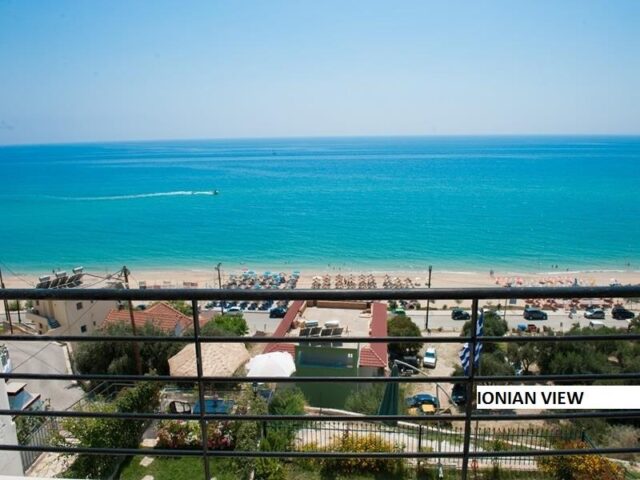 ВИЛА ЈОНИАН ВЈУ се наоѓа на 50 метри од плажа и има прекрасен поглед на целиот залив во Врахос. Вилата има сопствен паркинг, расоплага со модерно опремени четворокреветни пространи апартман. Сите апартмани имат свој балкон со поглед на море, комплет опремена кујна, бања, фрижидер, ТВ, купатило и клима (се доплаќа 6евра ден). Опис: апартманите се лоцирани на 2 кат, имаат две простории, спална со 1 брачен кревет и кујна со 2 единечни кревети, пешкири и постелнина се менува 2 до 3 пати во текот на престојот (зависно 7 или 9 ноќи).